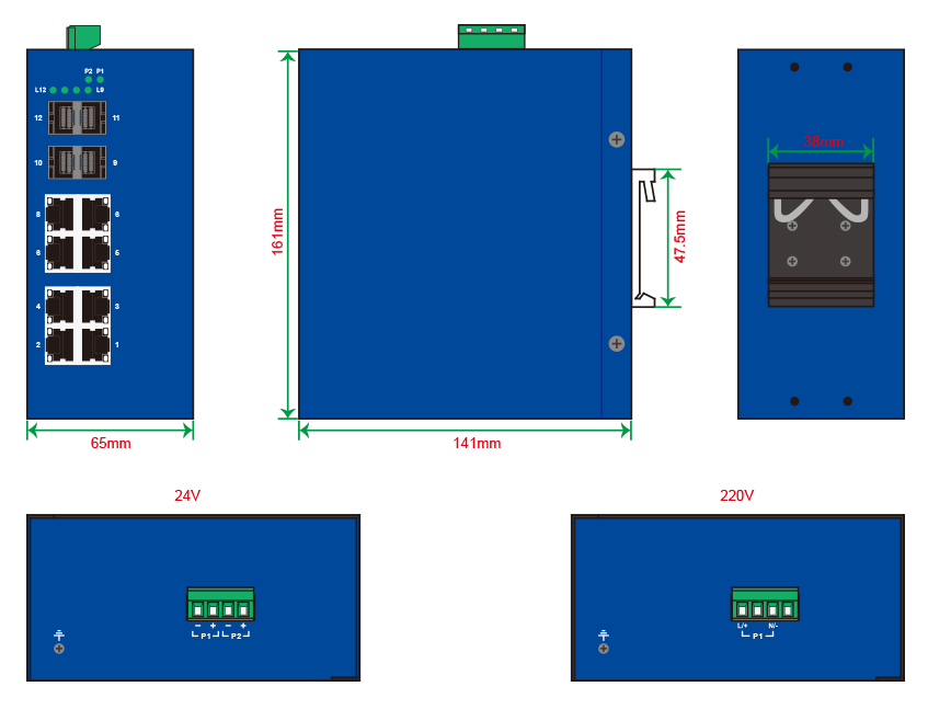 | 安裝方式 | 默認(rèn)導(dǎo)軌安裝,可選壁掛安裝 |